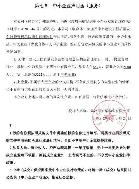 1.项目名称:天津市建设工程质量安全监督管理总队物业管理项目