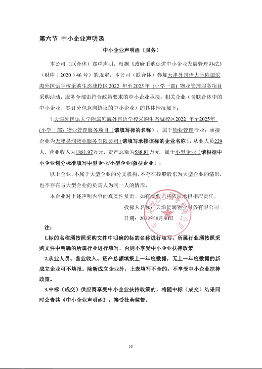 1.项目名称:天津外国语大学附属滨海外国语学校采购生态城校区2022年至2025年(小学一部)物业管理服务项目