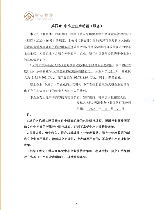 1.成交供应商名称:天津金友物业服务有限公司