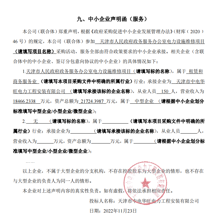 1.中标供应商名称:天津市中电华旺电力工程安装有限公司