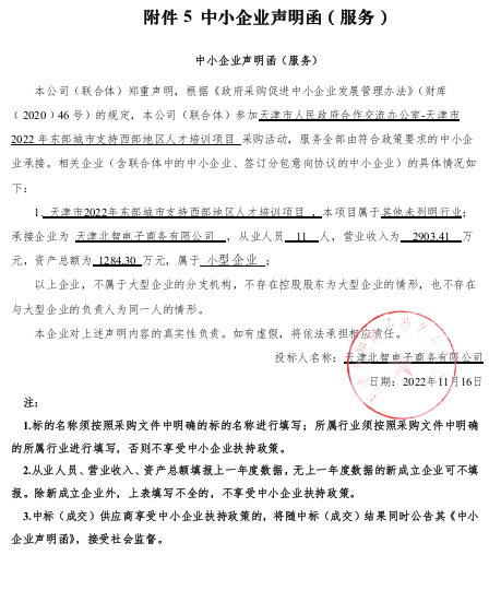 4.主要成交标标的名称、规格型号、数量、单价、服务要求或者标的基本概况:天津市2022年东部城市支持西部地区人才培训项目