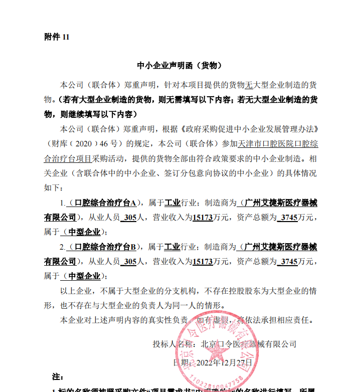 1.中标供应商名称:北京口令医疗器械有限公司