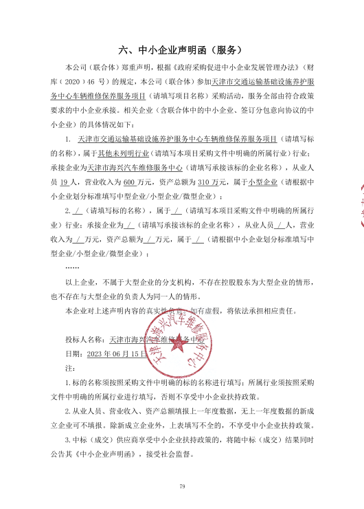 1.中标供应商名称:天津市海兴汽车维修服务中心
