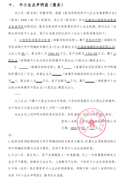1.中标供应商名称:天津深城建筑检测有限公司