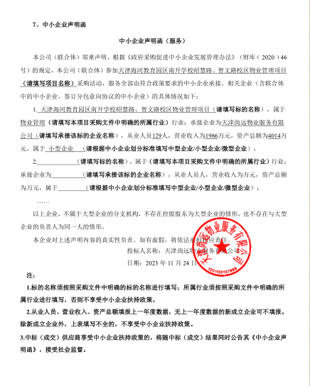 1.项目名称:天津海河教育园区南开学校昭慧路、智文路校区物业管理项目