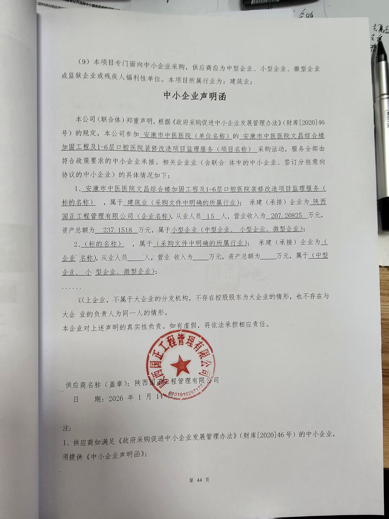 安康市中医医院文昌综合楼加固工程及1-6层口腔医院装修改造项目监理服务中标(成交)结果公告