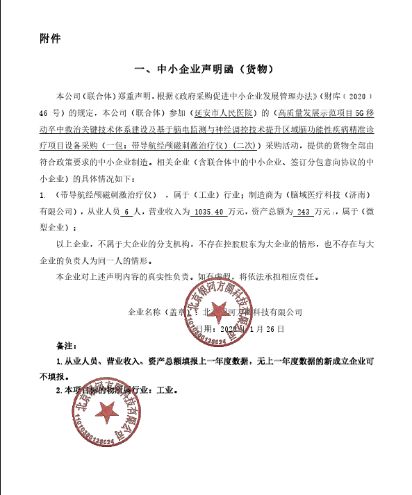 合同包1(延安市人民医院高质量发展示范项目5G移动卒中救治关键技术体系建设及基于脑电监测与神经调控技术提升区域脑功能性疾病精准诊疗项目设备采购(一包:带导航经颅磁刺激治疗仪)(二次)):